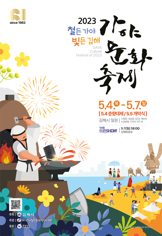 행사 둘째날인 5일에 이번 축제에 대한 개막식이 진행됩니다. 수릉원에 설치된 본무대에서 개최될 예정이지만, 5일은 비 예보가 있어서 김해시문화체육관으로 장소가 변경됬습니다. 김해시립합창단, 양산시립합창단, 어린이교향악단이 개막식 무대에 출연하는데, 김해시 홍보대사로 선정된 가수 정홍일씨와 성악가 박종수씨 등의 김해 출신 가수들의 축하공연도 예정되어 있습니다. 또한, 올해로 61번째로 개최되는 이번 축제를 축하하고 김해 출신의 가수들이 근황을 전하는 것으로 예정되어 있어, 개막식의 즐거움을 더할 것으로 기대됩니다.